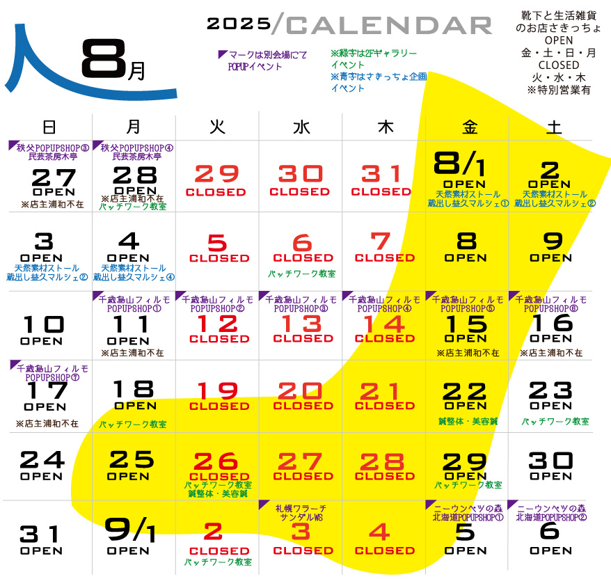 さきっちょ8月スケジュール