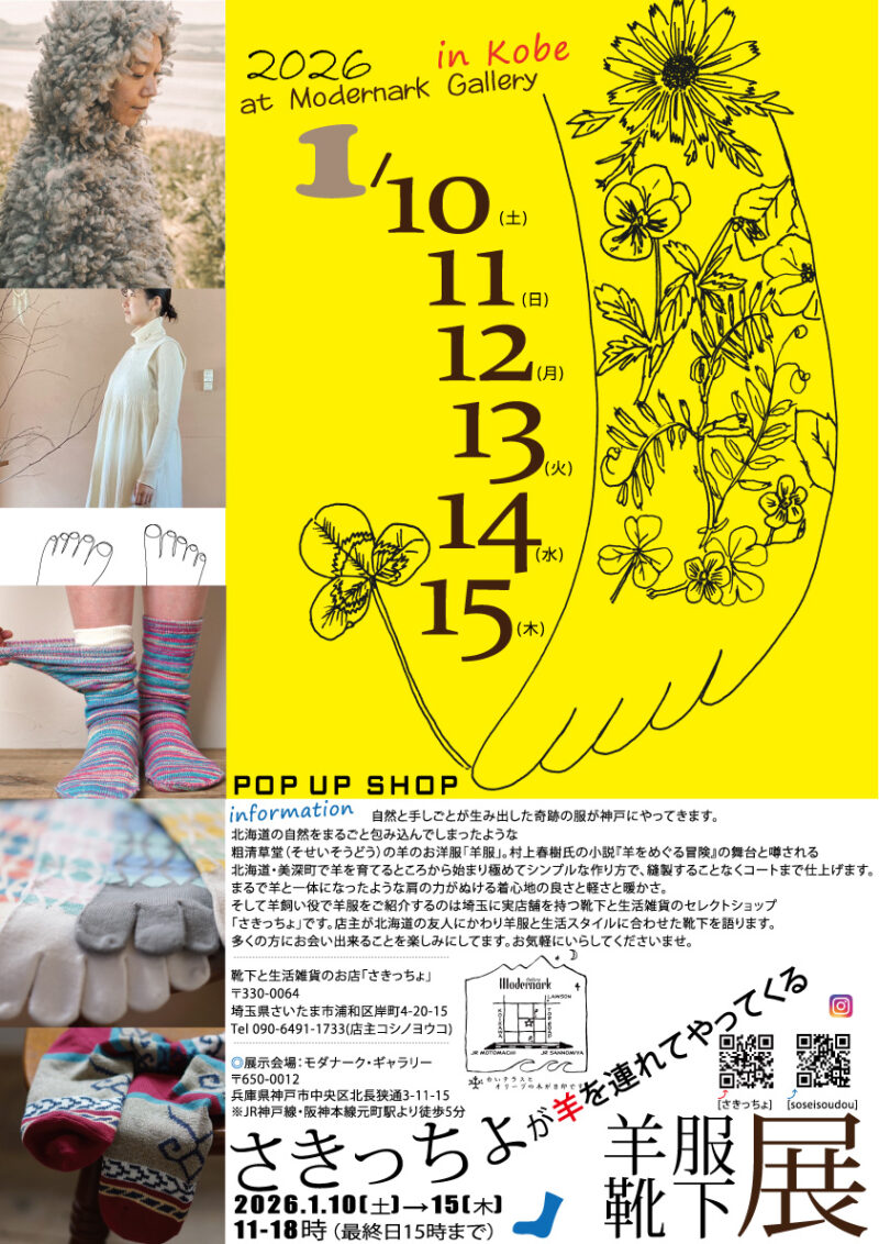[2026.1.10→15]さきっちょPOP UP SHOP in神戸 at Modernark Gallery「さきっちょが羊を連れてやってくる」羊服靴下展