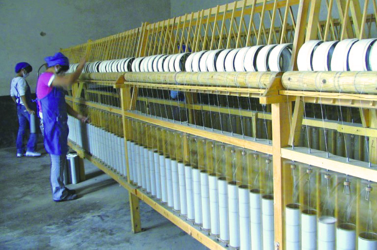 ※「ガラ紡」とは明治初期に日本人が発明した紡績の機械です。